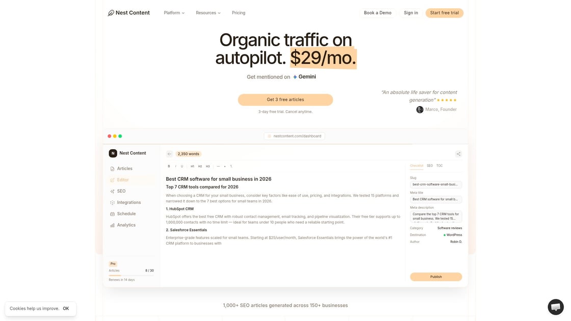 Join 200+ brands using Nest Content to publish optimized articles in minutes.