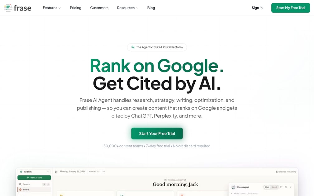 | Frase | Research + briefs | Moderate | Basic | No | No | $14.99/mo |