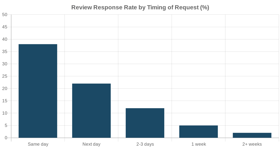 - Same-day requests get 38% response rate vs 2% after two weeks