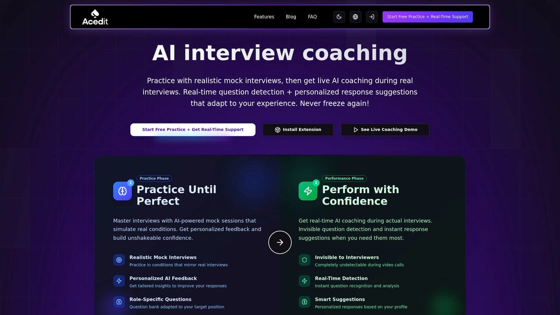 **Acedit** pairs LinkedIn profile optimization with interview preparation, creating cohesive personal branding across your job search efforts.