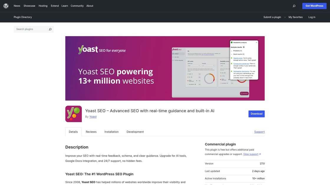 This does not make Yoast a worse plugin - it has continued to receive regular updates and remains one of the most actively maintained content optimization tools in the WordPress ecosystem. But it is a consideration for anyone making a long-term platform decision, particularly larger organizations that want to understand who controls the roadmap.