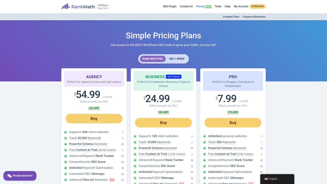 This is where the "Rank Math wins" conclusion in most reviews originates - and it is a fair conclusion for that use case. AI SEO tools at the platform level have a similar split: tools priced per seat get expensive at scale, while flat-rate tools are dramatically cheaper for agencies.