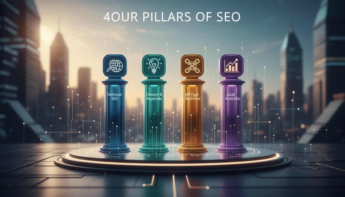 - Code - Technical optimization ensures search engines can crawl, index, and understand your pages. Clean HTML, fast load times, and mobile responsiveness directly impact rankings.