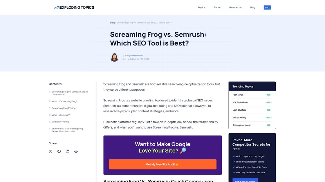This is not a beginner tool. The interface is dense and the data requires SEO knowledge to interpret. But every serious SEO professional has Screaming Frog installed. When a site drops in rankings and the cause is technical, this is the first tool you reach for.