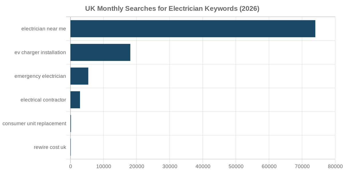 "Electrician near me" gets 74,000 searches per month in the UK. You already know that one. But "EV charger installation" gets 18,100 searches per month - and almost no electricians are targeting it.