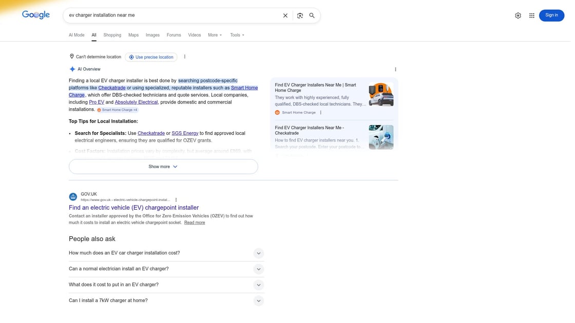 That last one is where SEO for electricians gets interesting. The "electrician near me" SERP is competitive. The EV charger SERP is wide open.