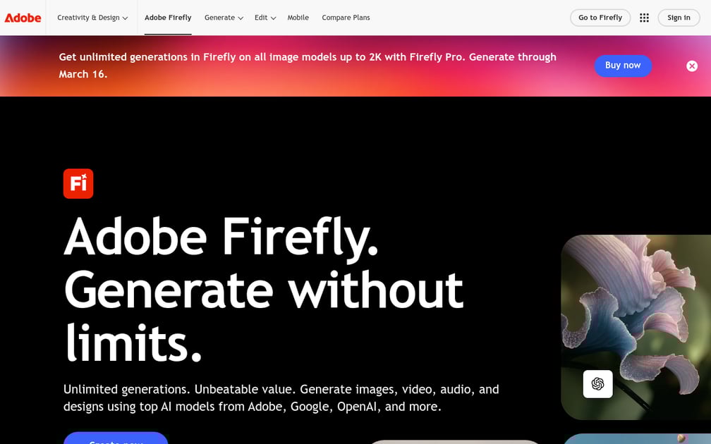 For agencies and brands where legal risk matters more than text accuracy - especially those scaling content production with AI content tools - Firefly is the only real option. The free tier offers 25 credits monthly, with paid plans starting around $10/mo for 2,000 credits. In early 2026, Adobe also integrated FLUX.2 as a selectable model within Firefly, which significantly improves typography for users who need it.