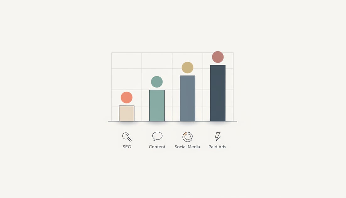 Your optimal mix depends on business stage. Early-stage companies need paid advertising for speed. Established brands shift budgets toward SEO and email as these channels deliver superior long-term ROI without perpetual spending cycles.